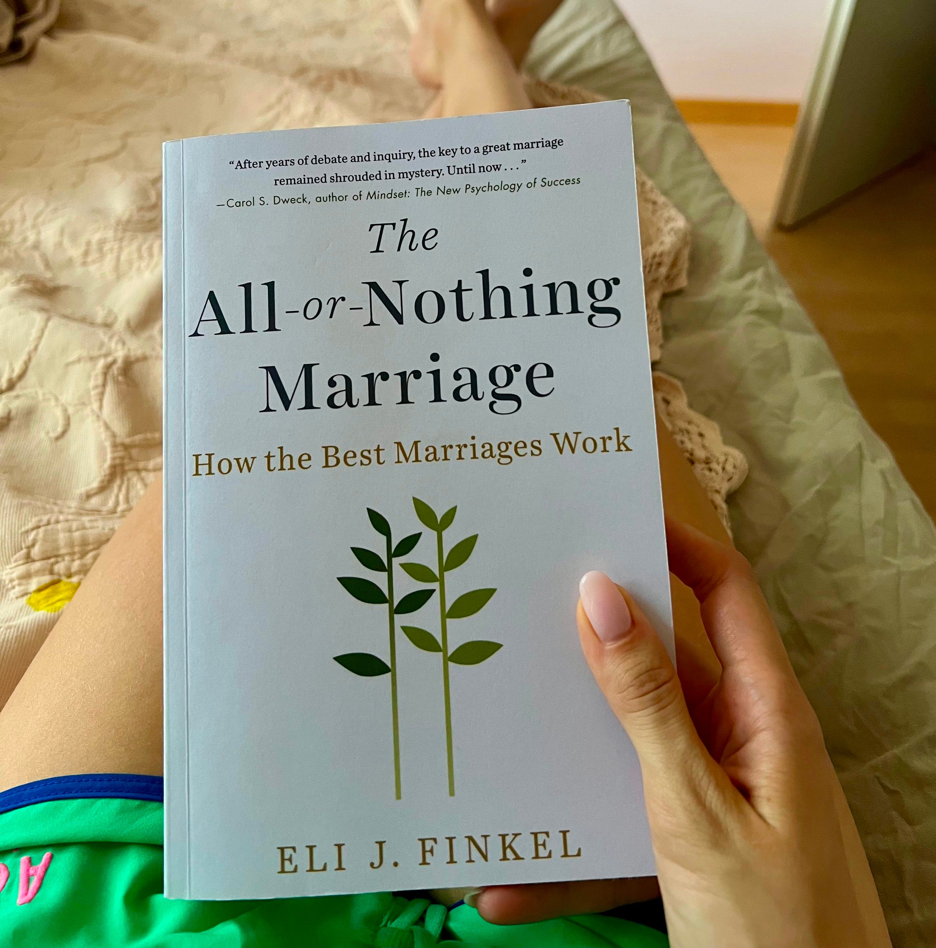 And speaking of weddings, The All-or-Nothing Marriage by Eli J. Finkel: This is a work of nonfiction, in which Finkel, a relationship researcher, details how the concept of marriage has evolved over time–from pragmatic to love-based to self-expressive. He draws attention to the fact that, interestingly, this has a striking resemblance to Maslow’s hierarchy of needs. (When it comes to our romantic relationships, we are now at the top of Mount Maslow, seeking self-actualization.) The book focuses on the self-expressive marriage, what it means and what it takes to make it work. The advice and ‘lovehacks’ he offers are actually pretty original and insightful.